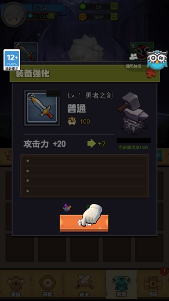 2、完成主线任务获取基础装备,优先强化武器,提升输出效率快速升级。