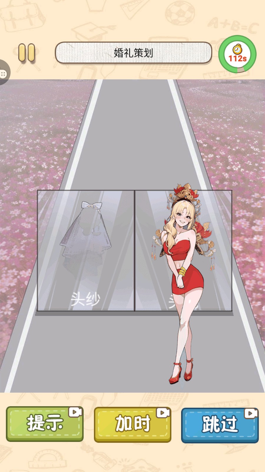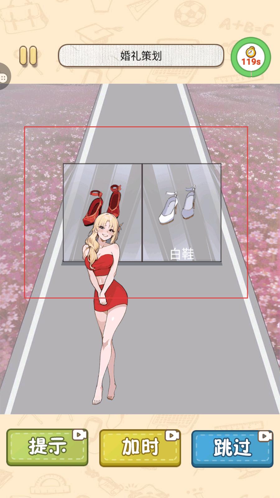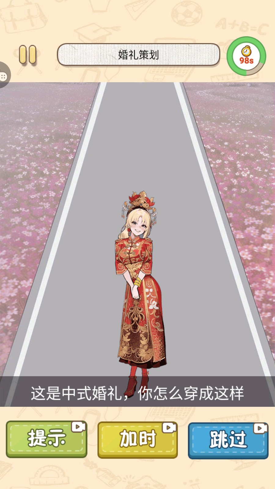 1、进入游戏,在婚礼策划主题下,角色面临又要结婚了,该穿什么呢的搭配问题,准备开始服饰选择。