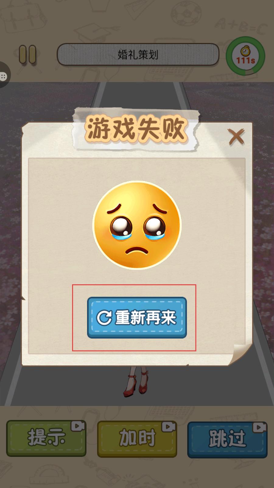 4、若搭配不符合要求,会显示游戏失败,此时可点击重新再来,再次尝试进行合适的服饰搭配。