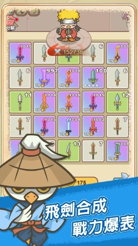 1、拖动相同等级的飞剑进行合成,通过合成提升飞剑等级,为战斗积攒更强战力,开启策略合成的冒险,逐步构建强力飞剑阵容。