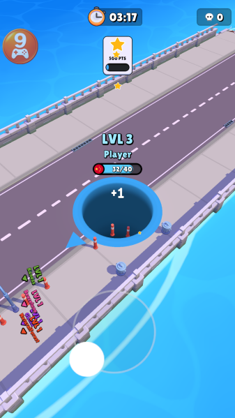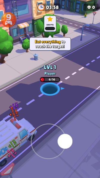 《Hole.io黑洞大作战》是一款火爆全球的休闲竞技手游,玩家将操控黑洞在3D城市地图中展开吞噬对决。开局从迷你黑洞起步,通过吞噬垃圾桶、行人等小型物体积累体积,逐步解锁吞噬汽车、建筑的能力,最终可吞噬其他玩家黑洞。游戏设有2分钟限时对战、无尽模式、团队赛等多元玩法,支持全球联机与本地蓝牙对战,搭配13种炫酷皮肤自定义形象。简单滑动操作搭配“以小博大”的逆袭快感,让各年龄段玩家都能快速沉浸,在碎片化时间中享受竞技乐趣。