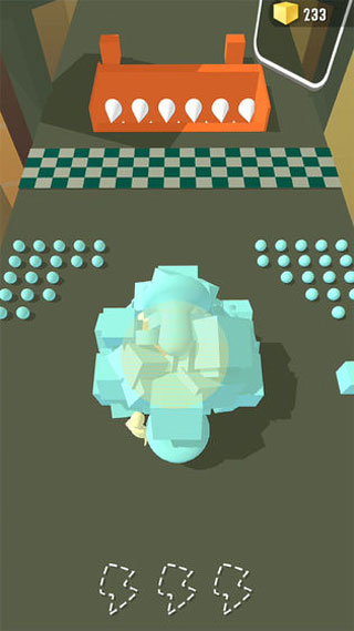 1、进入游戏后,操控圆滑的小球在场景中自由翻滚,精准瞄准周边同色物体,主动靠近并完成吸附,逐步积累成长能量。
