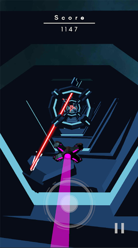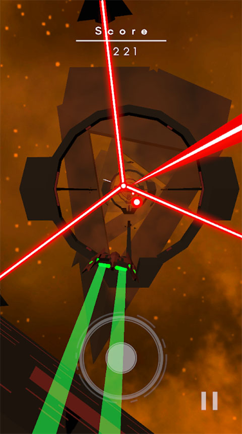 2、点击滑动屏幕控制飞船移动,注意避免障碍物。