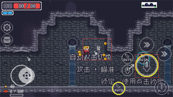 3、切换自动攻击模式,结合攻击加瞄准操作,对地牢中的敌人发起攻击,同时利用锁定功能精准打击目标。
