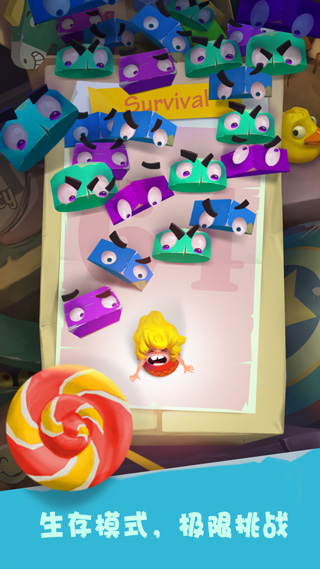 3、收集系统与技能结合,场景中糖果可激活特殊技能,助力对抗密集怪兽与高难度关卡。