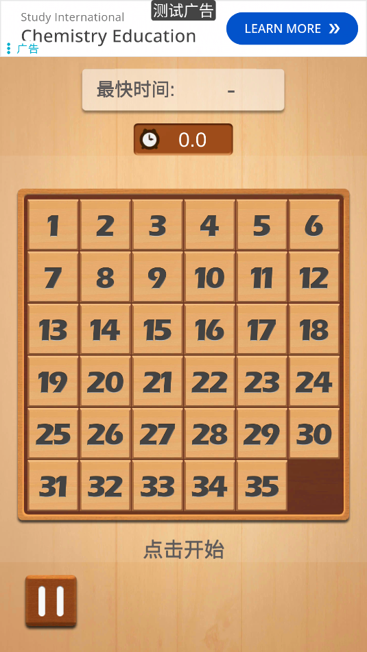 2、进入简单的关卡,以此界面为游戏通关数字排序,点击开始。