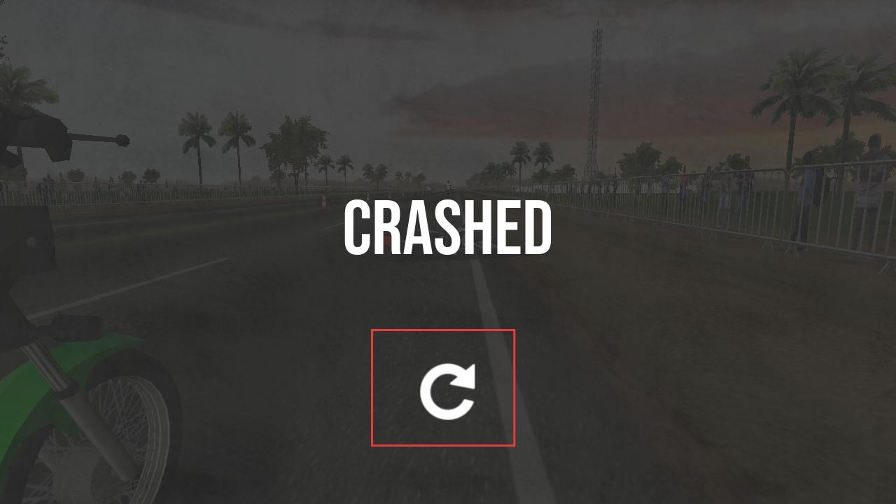 4、若驾驶中发生碰撞,会出现CRASHED提示界面,点击重置按钮可重新开始,继续挑战摩托特技。