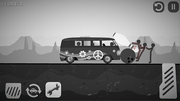 3、开始游戏后,你需要通过点击左右两侧的刹车以及按键控制车辆撞击前方的火柴人。