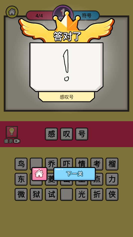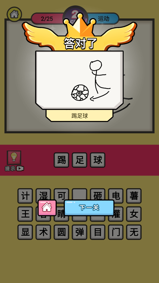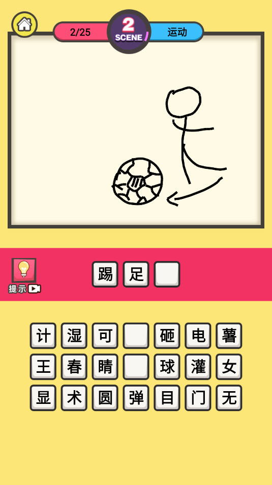 2、游戏中,以系统画出来的图案,选出对应的文字。