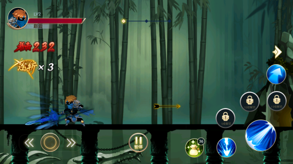 1、横版闯关经典复刻,搭配动态战场互动,躲避陷阱、利用地形优势击败敌人,玩法多样。