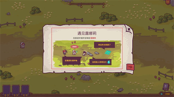 2、查看遇见赛娜莉的提示,了解在旅途中守护同伴的玩法,按指引推进游戏进程。