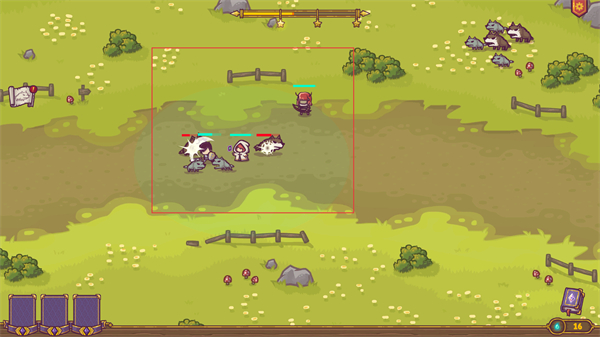 3、操控守卫者主动靠近狼崽敌人,持续发起攻击,逐步削弱敌人的血量推进战斗进程。