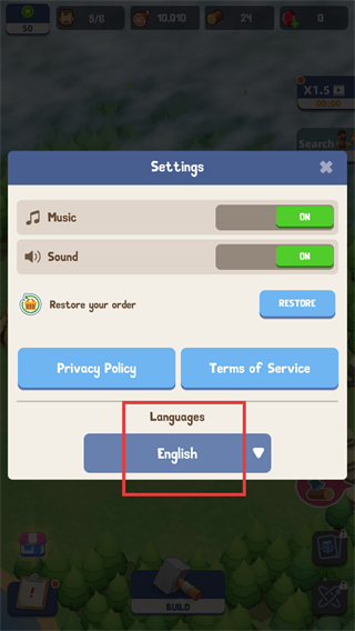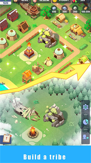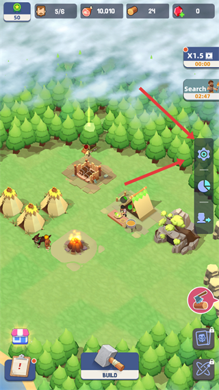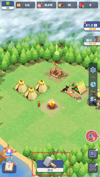 4、语言设置完成后,返回游戏场景,点击建造按钮,继续进行营地设施的建造操作。