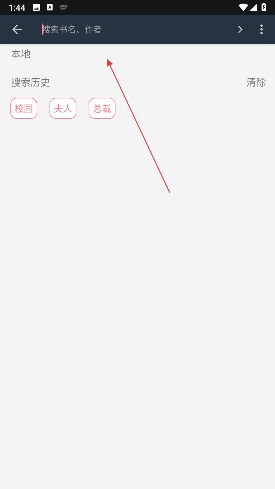 4、返回APP主界面,点击搜索栏,进入搜索页面,这里有搜索历史,可直接点击历史标签,也能输入书名、作者查找图书。