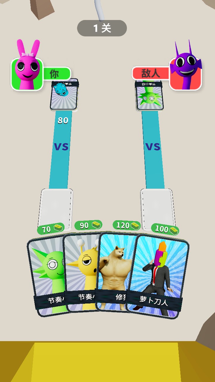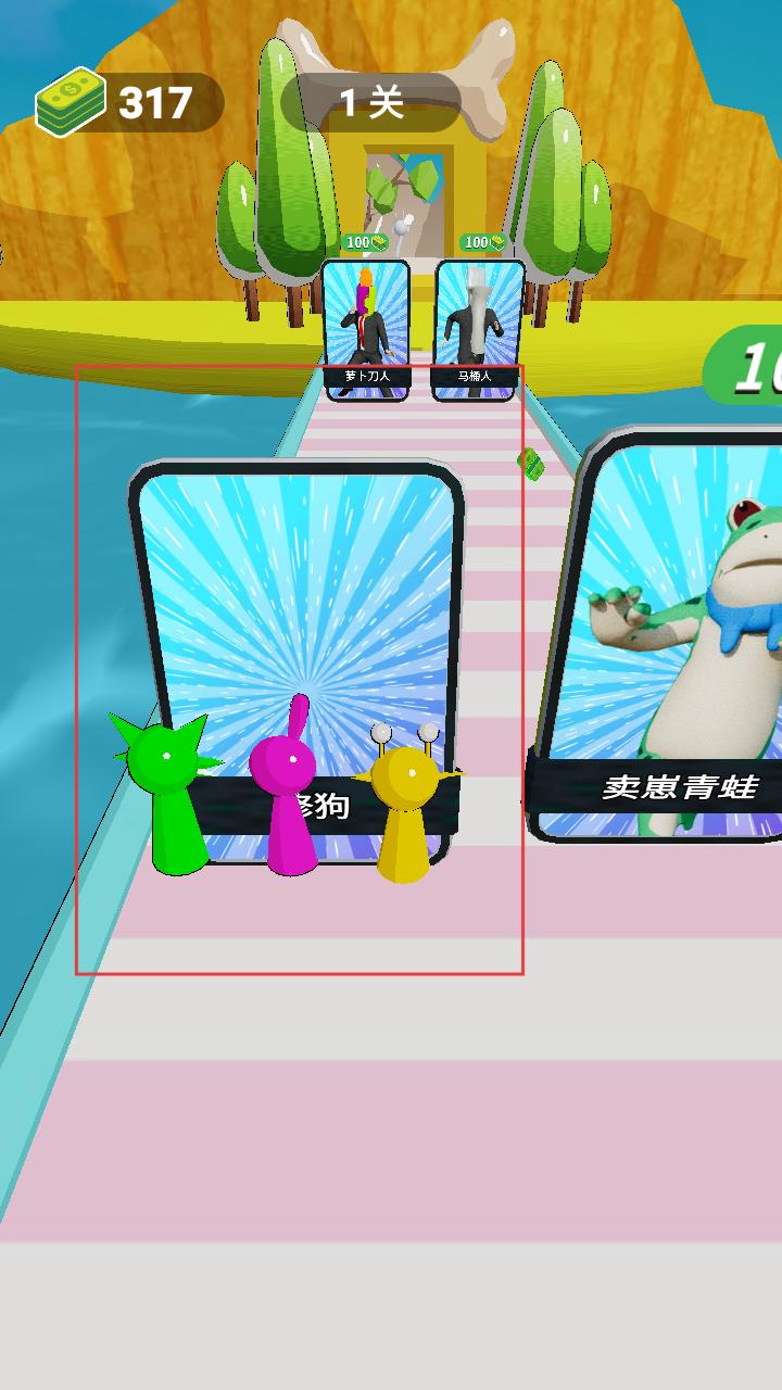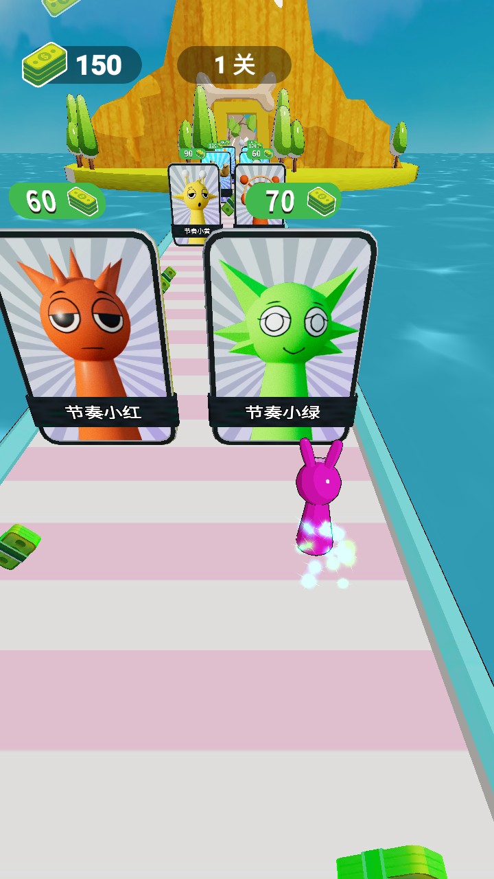 2、在跑酷途中会遇到各类角色立牌,合理操控角色移动,选择合适的角色加入队伍,增强跑酷实力。