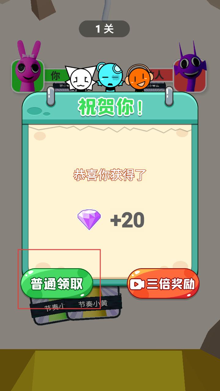 4、成功通过关卡后,出现奖励界面,点普通领取获取钻石奖励,为后续关卡做好准备。