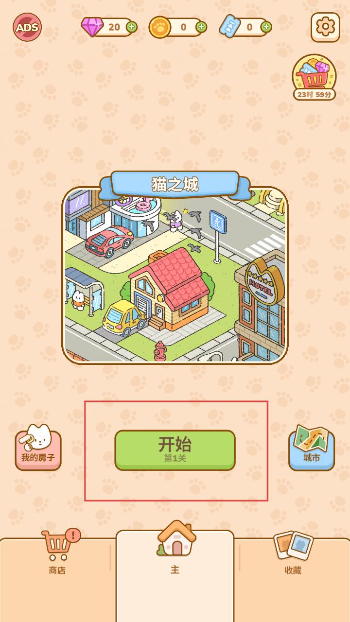 1、进入游戏,点击开始按钮,开启第一关的装修之旅,准备打造属于自己的空间。