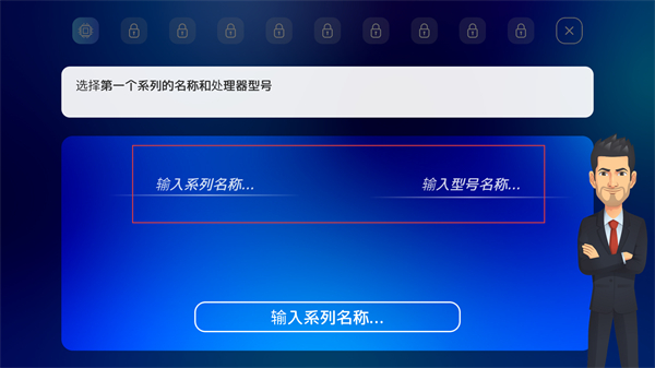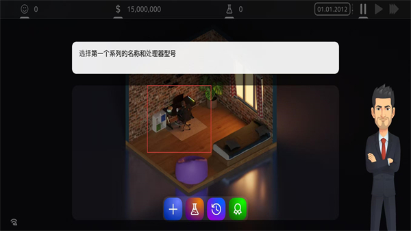 3、点击场景中的办公区域,进入产品系列与处理器型号的配置环节,推进初始设置流程。