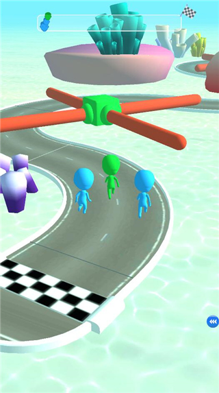 1、玩法聚焦竞速与乱斗结合,五人同场竞技,需在障碍中冲刺,通过撞击、推挤对手抢占先机,留存到最后或先到终点获胜。
