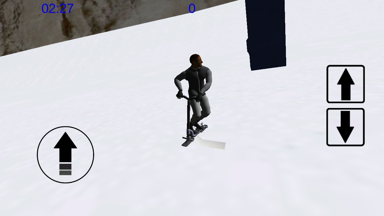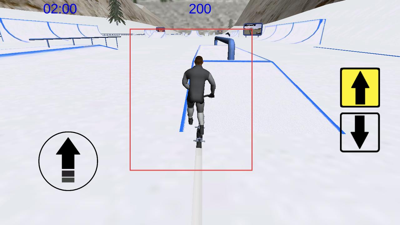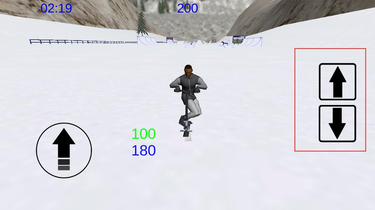 2、滑雪时通过上下方向键操控角色,在雪道上前行,同时留意周围的地形和障碍物。