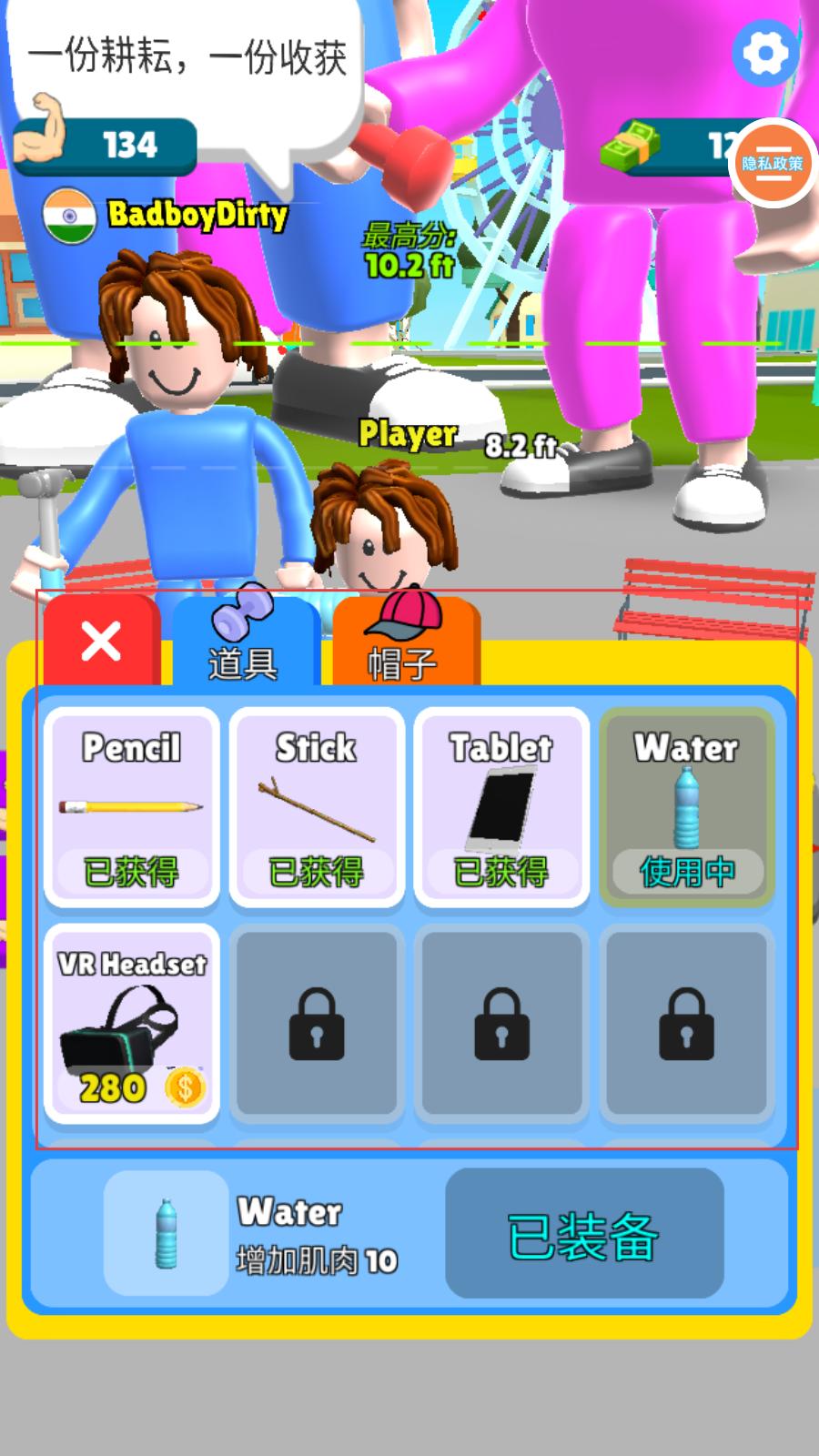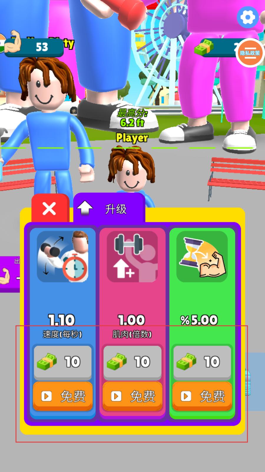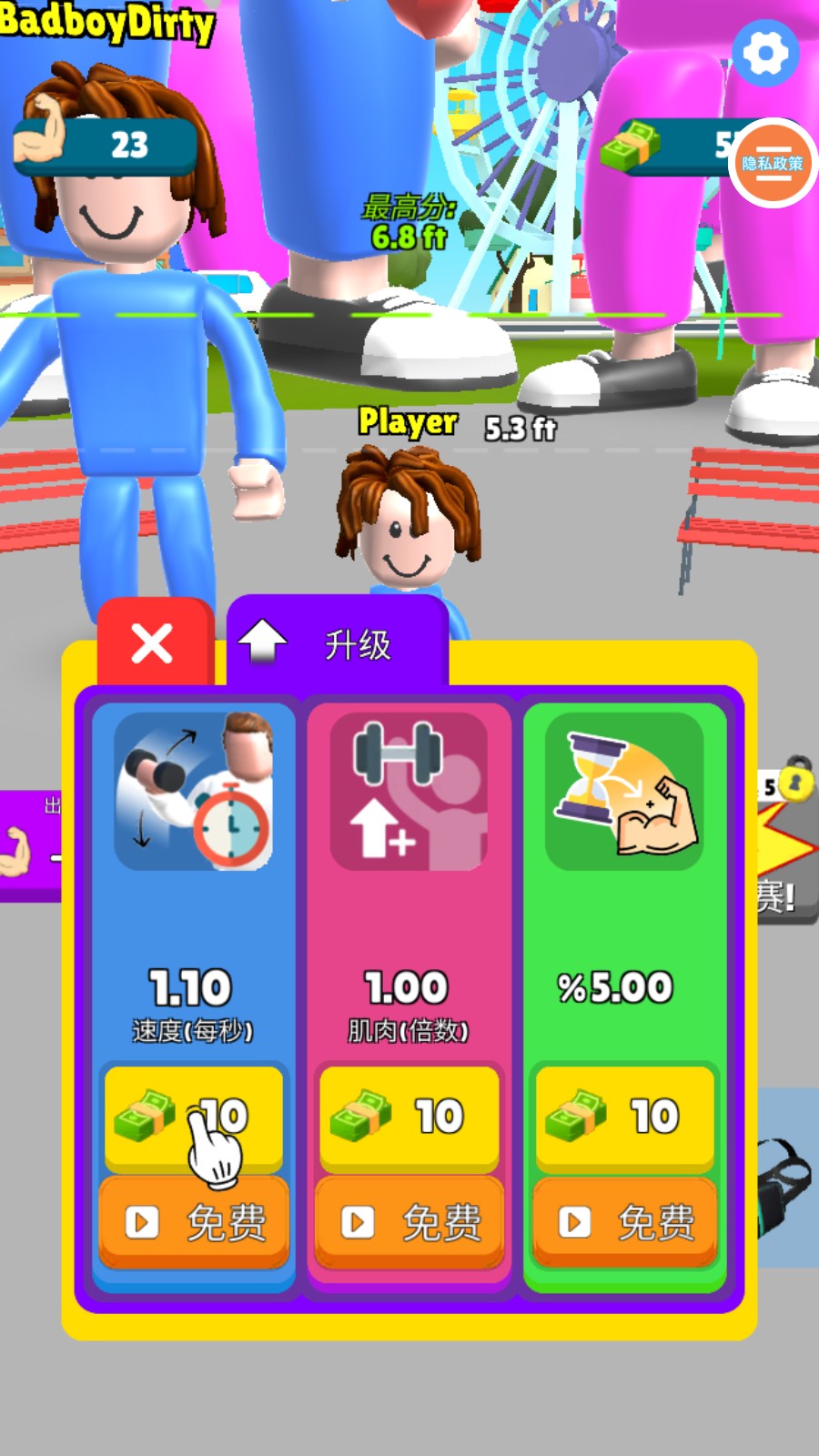 3、在升级界面,有速度、肌肉等不同属性可升级,花费金钱就能提升这些属性,让角色变得更强大。