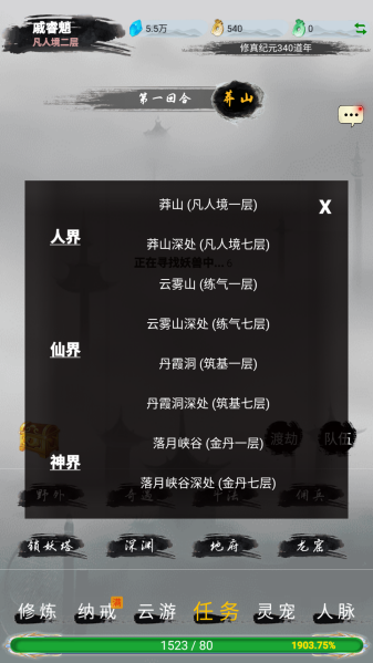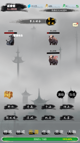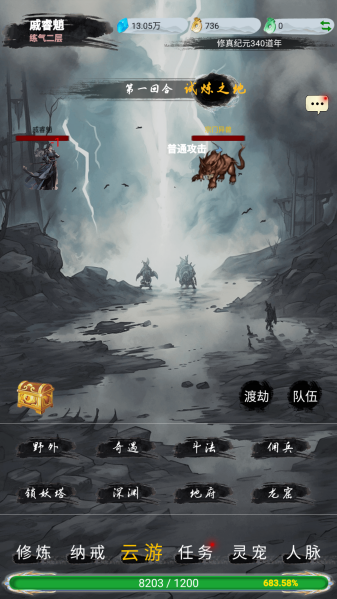 2、资源获取:野外挂机吃加成丹药,优先刷2回合可解决的怪,攒材料待后期强化。