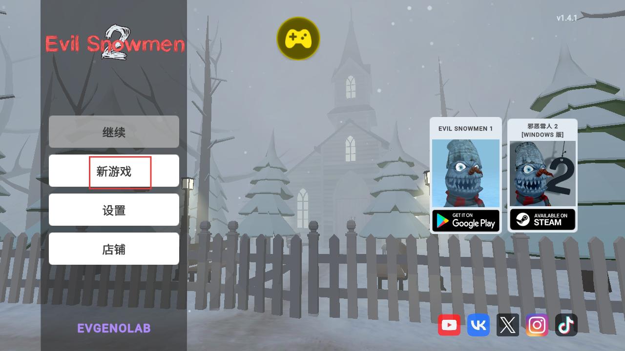1、在游戏主界面点击新游戏,开启在神秘诡异小镇的恐怖冒险之旅,准备迎接邪恶雪人的追击与各类谜题挑战。