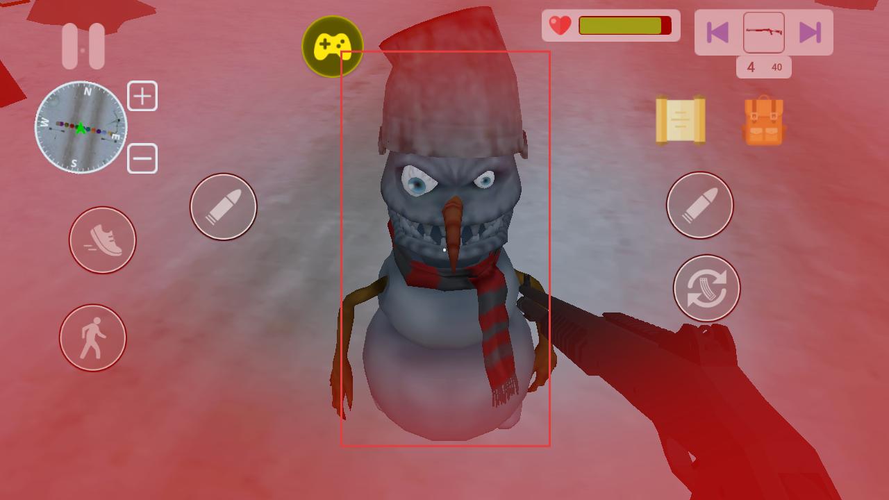3、遇到雪人敌人时,点击射击按钮使用武器攻击,借助武器系统抵御其进攻,在紧张的战斗中寻找生存机会。