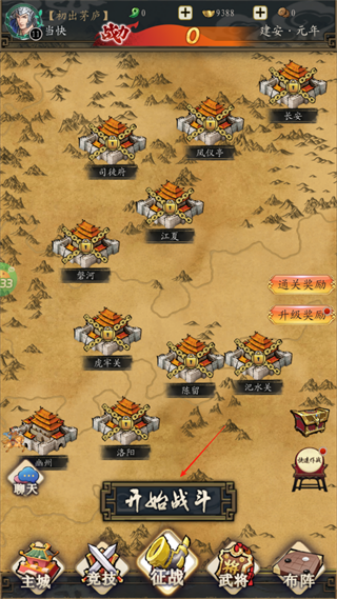 3、主公光环加成:通过背水一战获取武运,升级光环为全体武将提升属性,战力飙升。