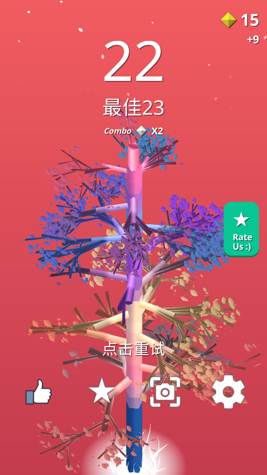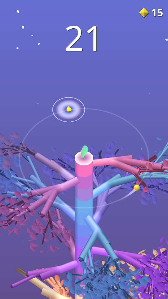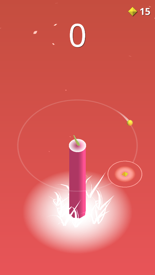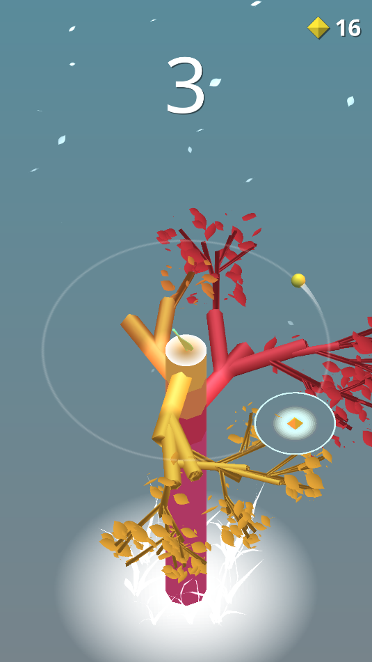 2、游戏中,小球是自动围绕大树滚动的,当接近这个光环时就点击屏幕,使小球会弹回去,长出树枝。
