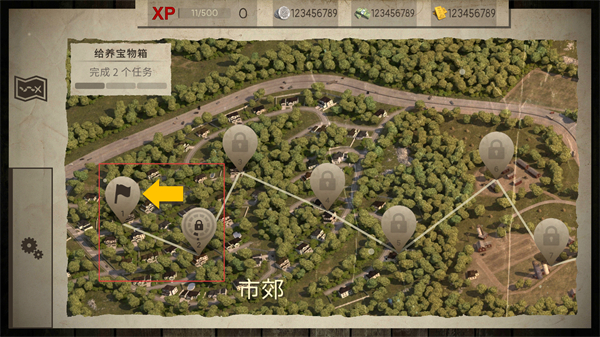1、点击地图上带旗帜标识的地点,进入市郊对应的任务区域,开启该地点的僵尸战斗任务。