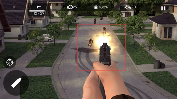 4、瞄准前方出现的僵尸发射子弹,命中后触发爆炸效果,清除当前区域的僵尸推进关卡。
