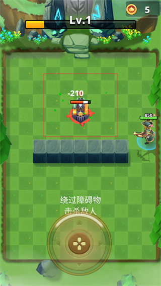 2、操作摇杆控制角色绕过障碍物,调整角色位置后攻击敌人,完成击杀敌人的战斗目标。