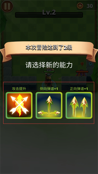 4、冒险升级到2级后,在能力选择界面挑选新能力,获取对应的属性加成或战斗效果。