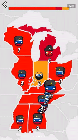 《国家球战争》核心围绕国家发展与全球领土争夺展开,以军事部署、科技研发、战役攻坚为基础,构建玩法框架。体验上,卡通画风与战争音效营造沉浸氛围,领土扩张与战役胜利带来满足感。设计上,操作贴合策略需求,多系统与战略机制结合紧密,形成 “选国家 - 建城市 - 练军队 - 争领土” 的完整循环,兼顾策略深度与博弈趣味。