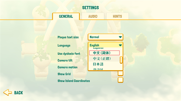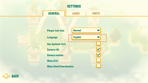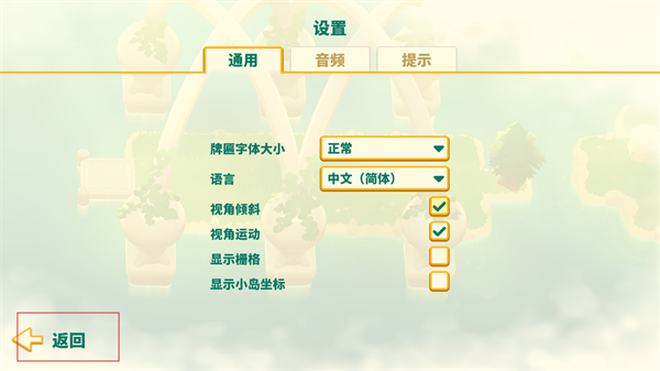4、确认语言设置完成后,点击返回按钮回到主界面,准备开始游戏的探索与解谜内容。
