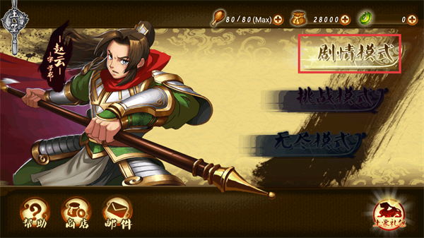 1、点击界面上的剧情模式选项,进入对应玩法流程,开启以三国战役为背景的战斗冒险。