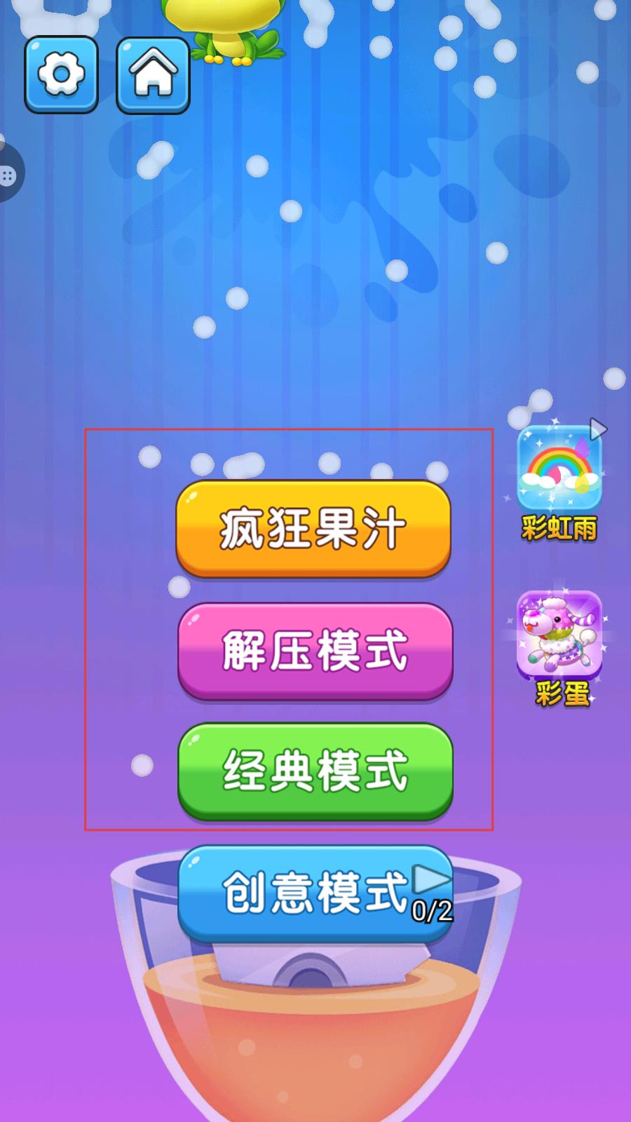 1、进入游戏,可选择疯狂果汁、解压模式、经典模式等不同玩法,开启果汁制作之旅。