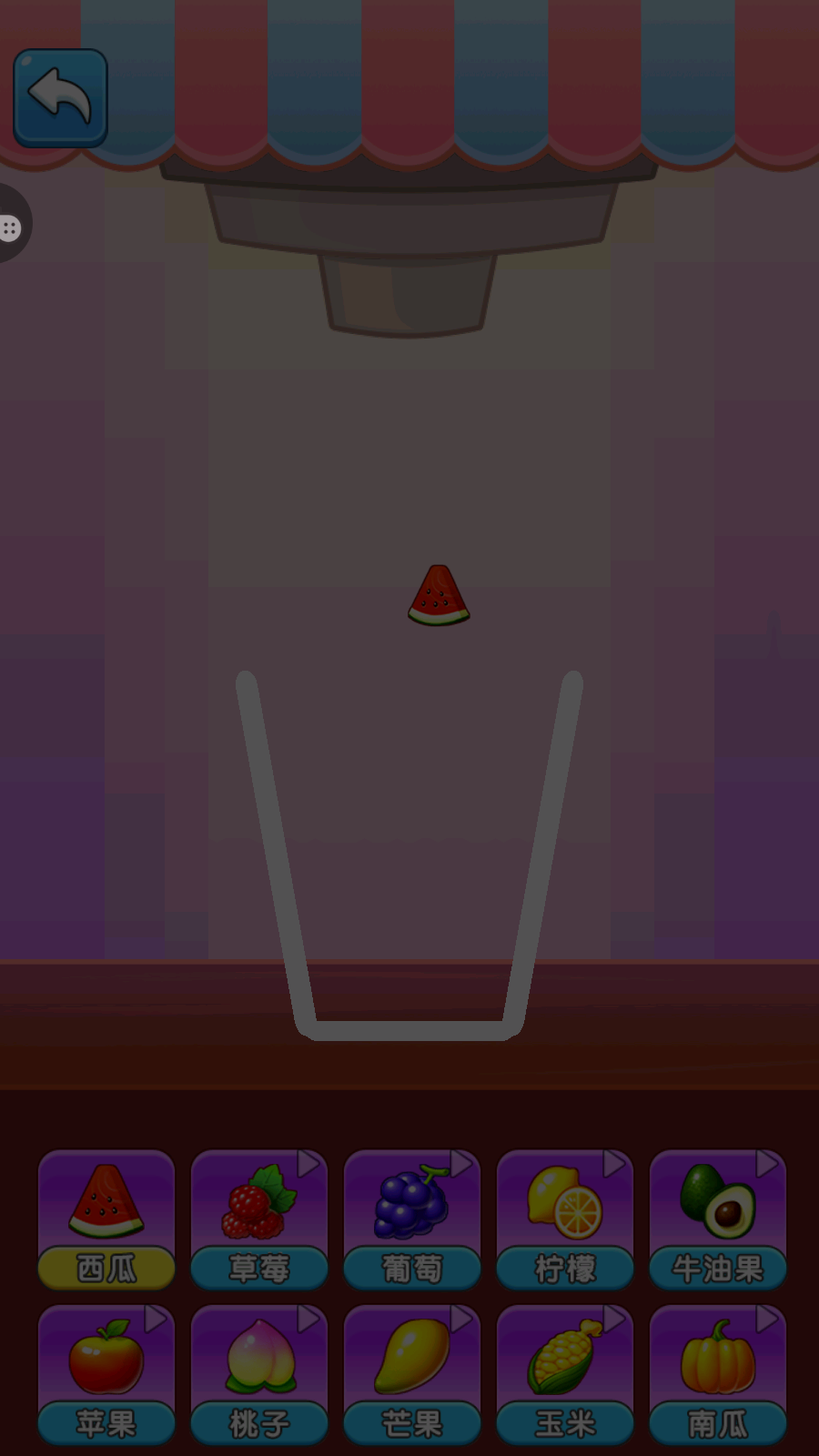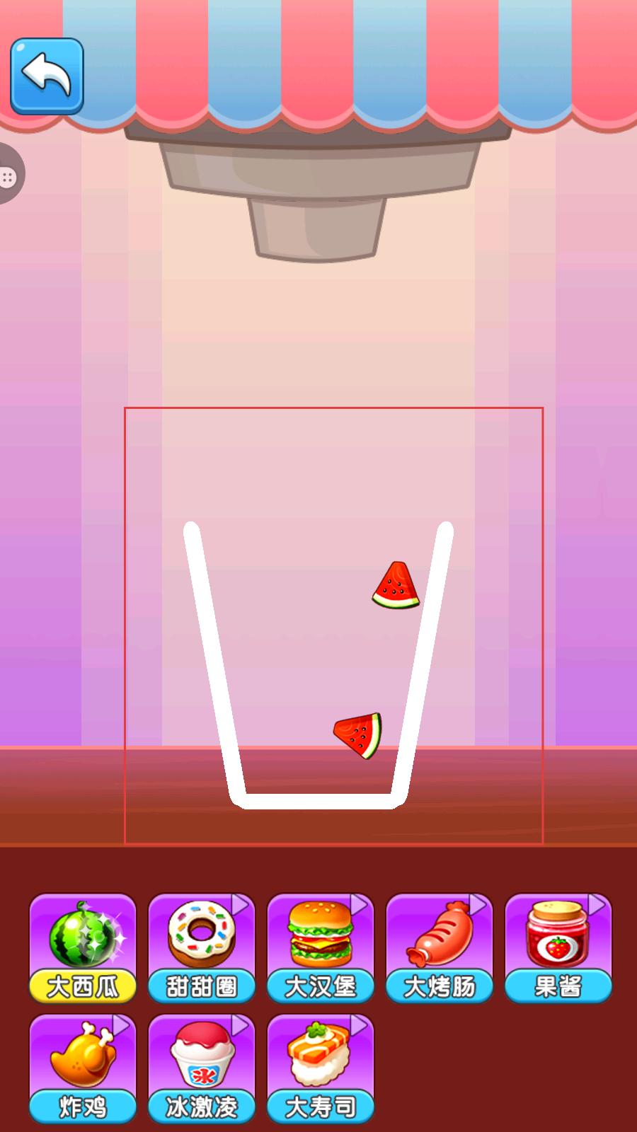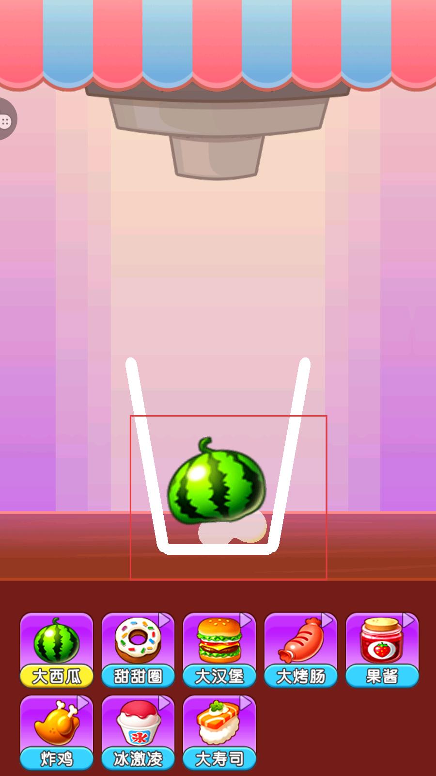 2、在制作界面,从下方选择西瓜等食材,将其放入容器中,为榨汁做准备。