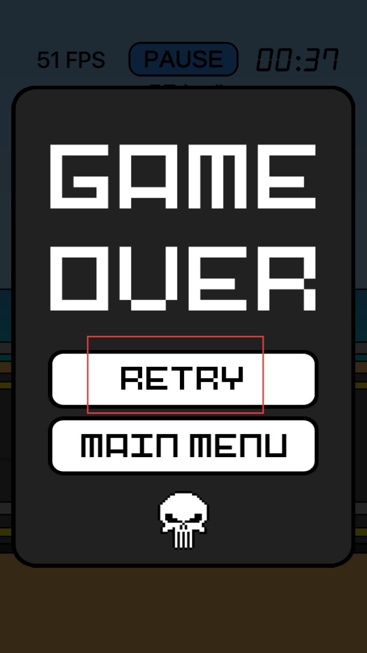 4、若驾驶失败,出现GAME OVER界面,可点击RETRY按钮重新开始,继续挑战摩托车特技与竞速。