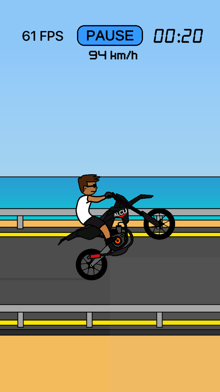 3、行驶过程中尝试做出前轮离地等特技动作,需要精准控制摩托车的平衡与速度,完成特技挑战。
