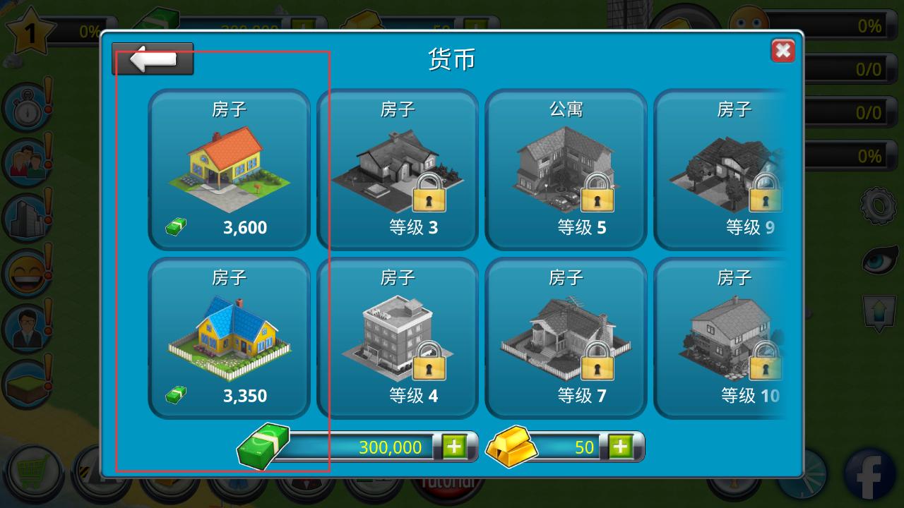 2、在建筑选择界面,能看到不同类型的房子等建筑,根据需求和资金情况,挑选想要建造的建筑。