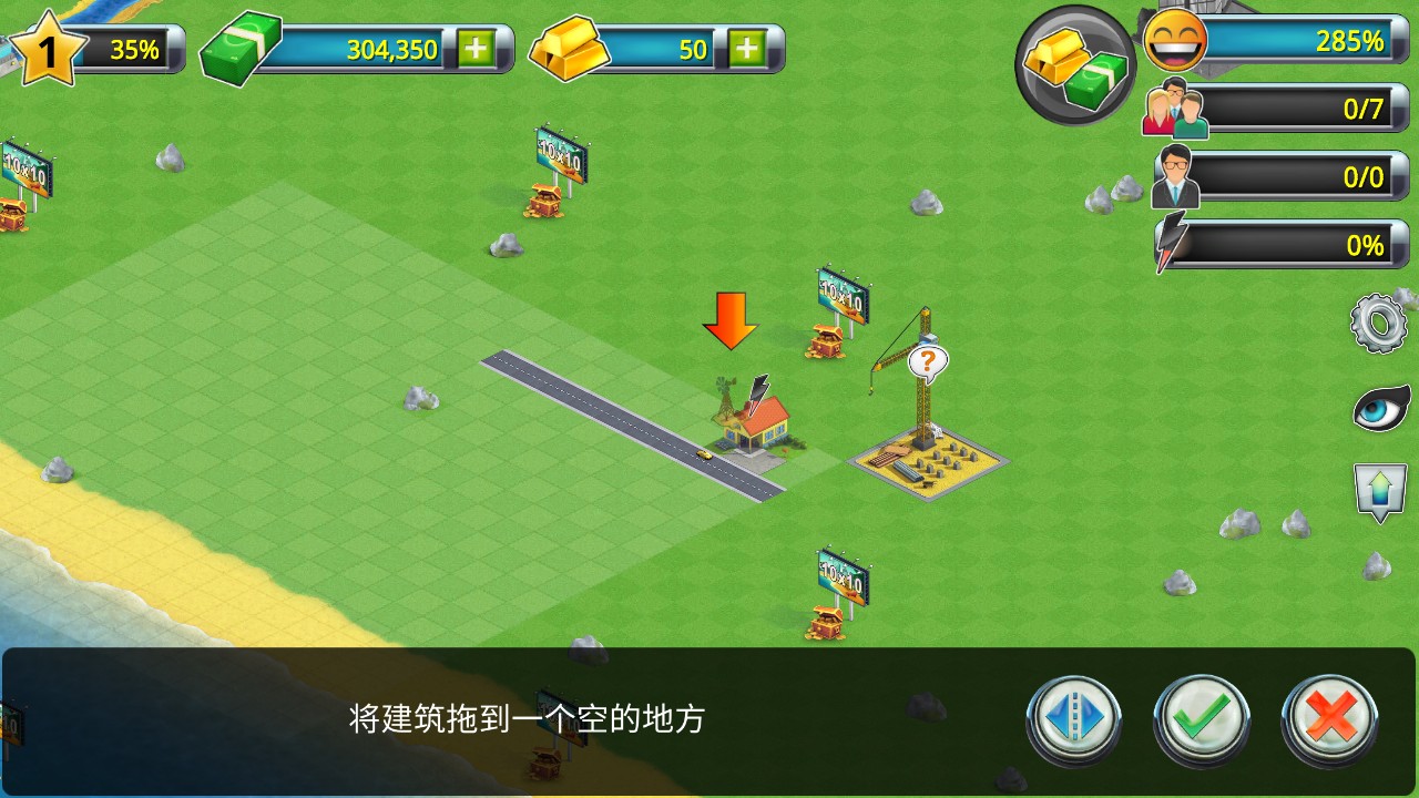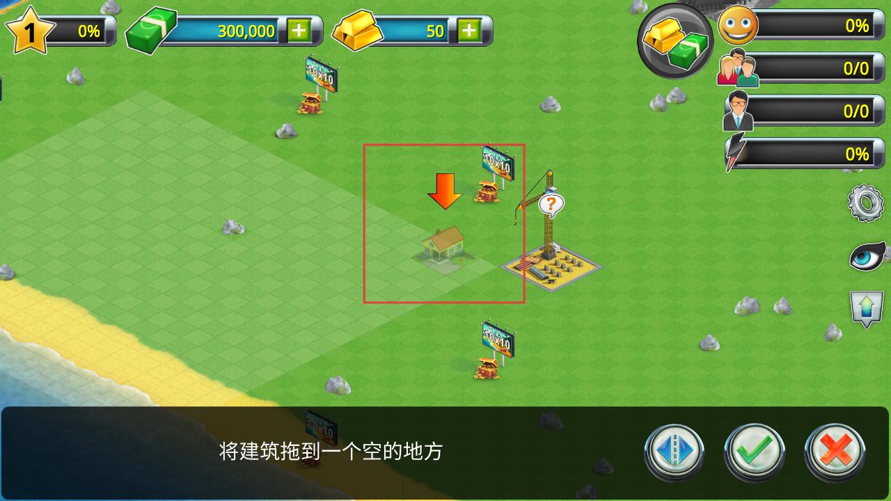 3、选好建筑后,将其拖到岛屿上的空地方,放置建筑,开始建设城市的第一步。