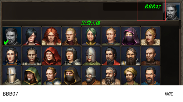 2、在头像选择界面点击心仪的头像,选中后点击确定按钮,完成角色外观的初始设定。