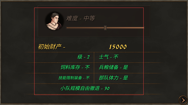 3、查看难度初始财产等开局配置信息,确认当前的中等难度与初始资源,准备进入游戏。