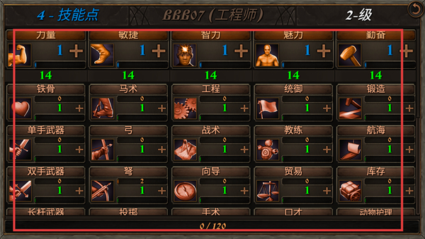 2、角色技能树分为战斗、领袖、管理三大分支。战斗技能强化个人武艺,领袖技能提升带兵数量与士气,管理技能优化领地收入与建设速度。