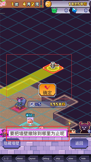 1、点击确定完成墙壁撤除操作,按照提示调整墙壁范围,改变魔王城的空间结构,为后续布局留出更多区域。