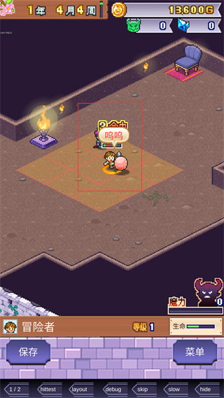 4、操控城堡内的魔物发起攻击,阻拦进入的冒险者,完成防御任务,保护魔王城的安全,稳固城堡的经营状态。