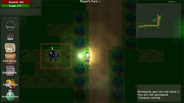 2、操控角色靠近蜘蛛敌人,触发战斗互动,注意界面提示的麻痹状态变化,调整行动策略。