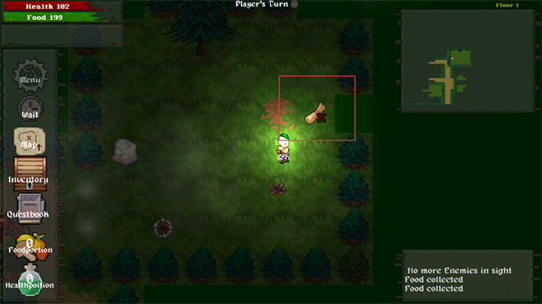 3、控制角色移动到木棍道具位置,拾取该物品,同时查看界面显示的食物收集状态更新。